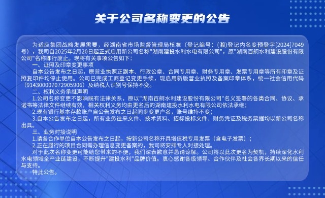湖南建投水利水電有限公司是大型千億級省屬國企湖南建設投資集團旗下二級子公司。